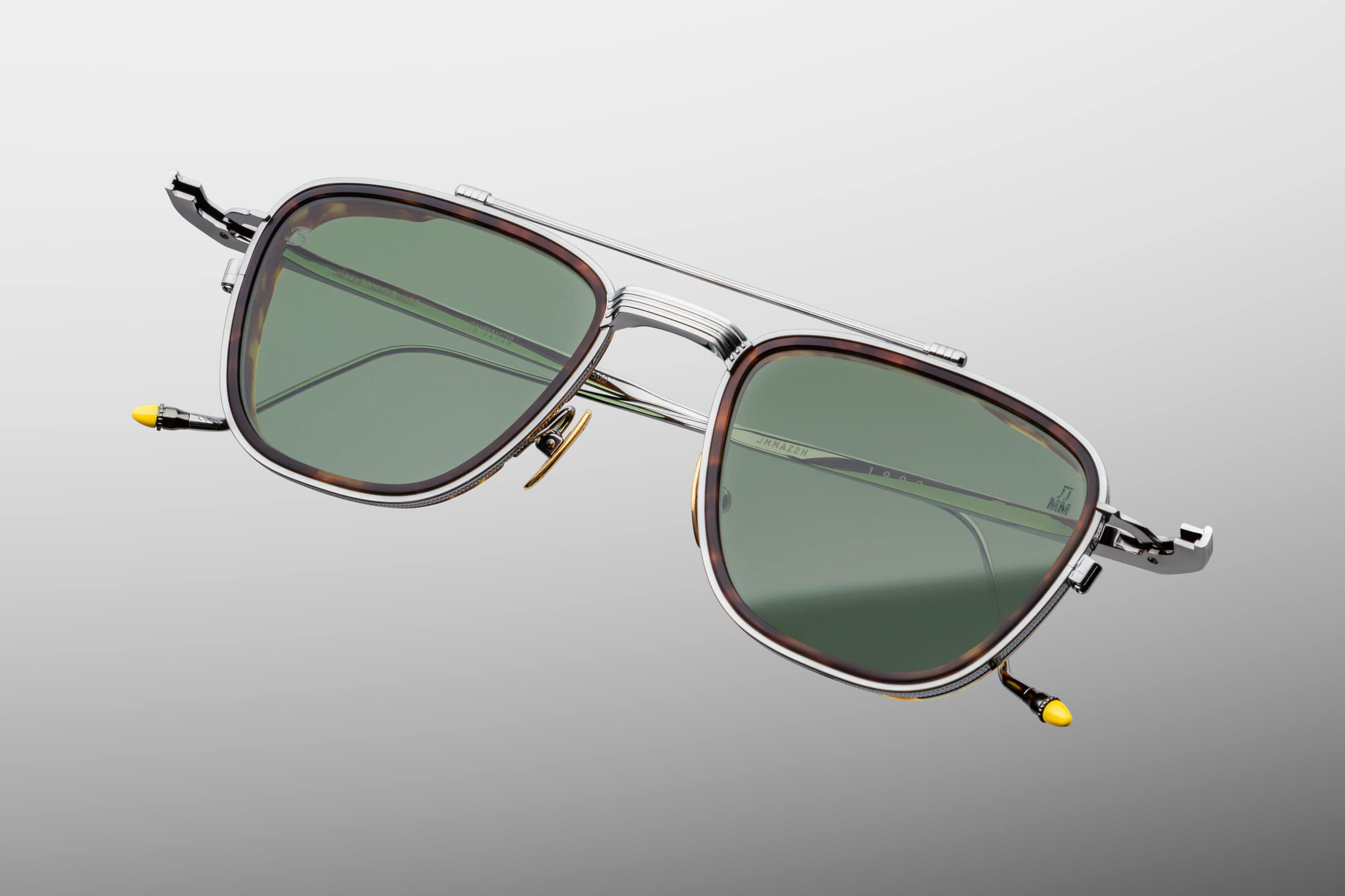 The model has been finished. monoblock hinges in gunmetal colour and hand-painted temple tips in yellow epoxy with black, polished ring. Golden noses i green mineral lenses Taiga Green with an anti-reflective coating on the inside emphasise the luxurious character of this edition.