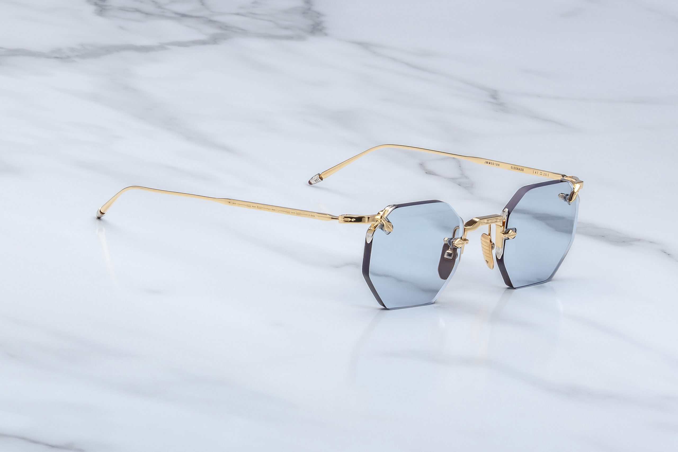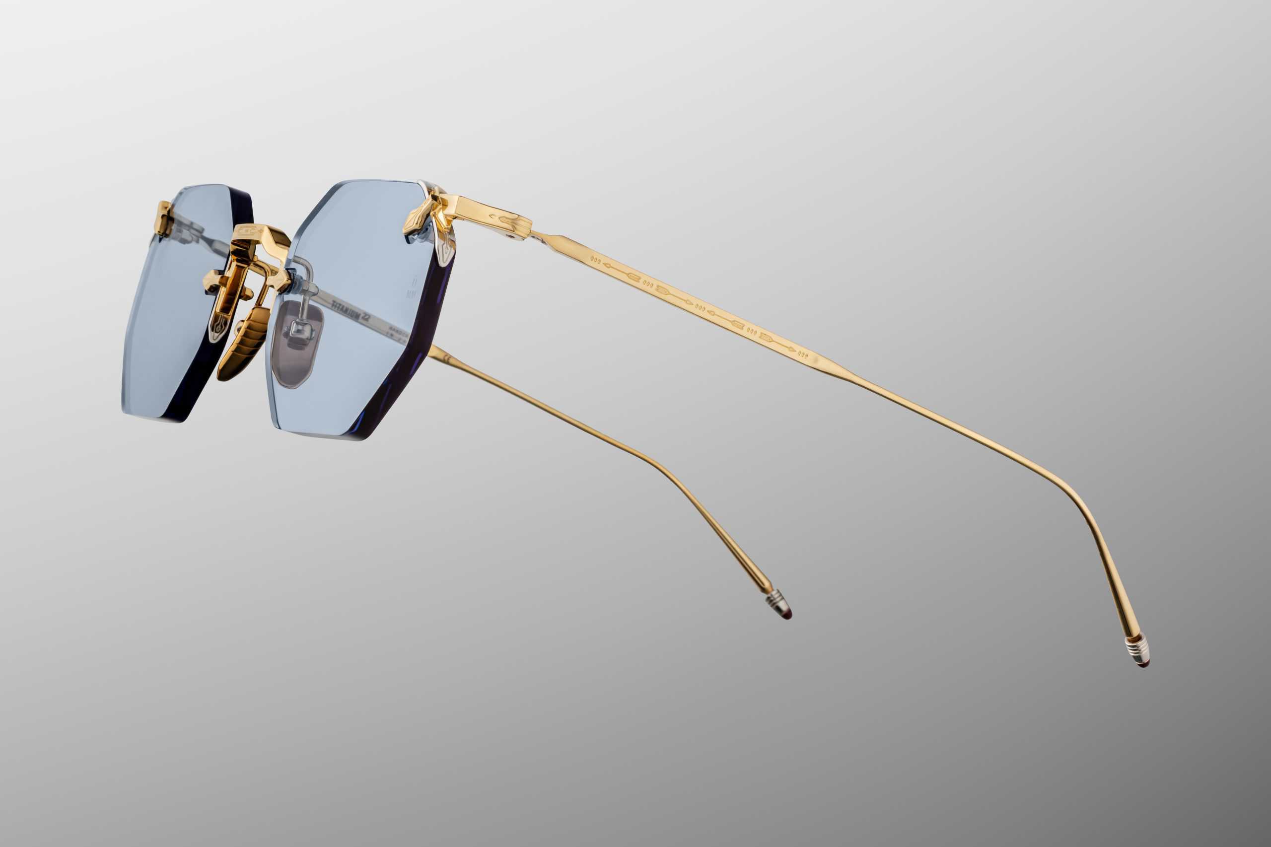 Model Eldorado in Ciel These are frameless glasses with octagonal lenses, inspired by the aesthetics of the 1930s and the pioneering spirit of that era. Limited edition. 500 copies combines minimalist form with masterful craftsmanship, creating a setting that exudes lightness, precision and artistic sophistication.