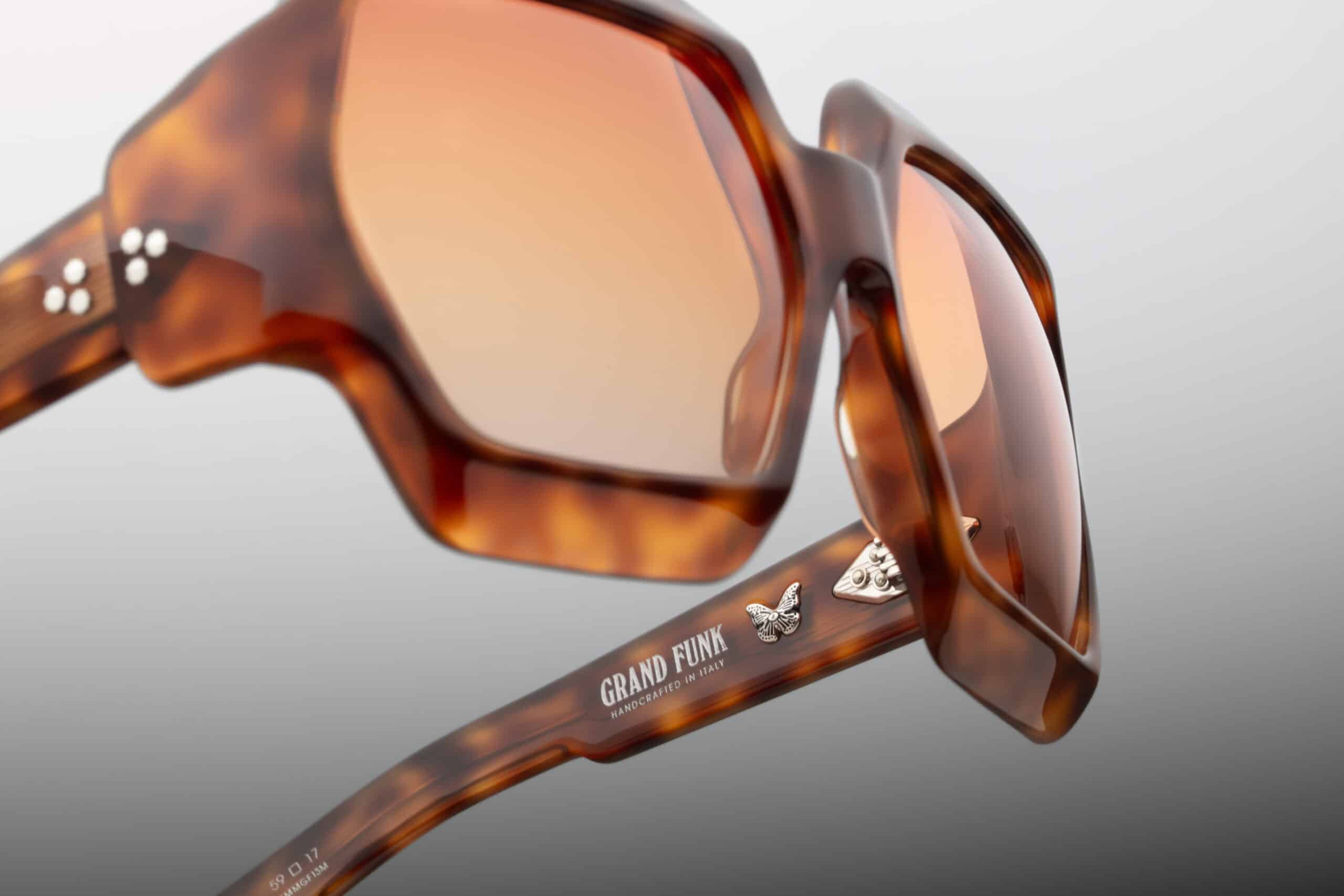 Model Grand Funk in Teddy Brown is a tribute to the expressive spirit of the 1970s – bold, hexagonal shape, sculptural form and top-class Italian craftsmanship. Handcrafted in a limited edition. 200 copies, combines vintage style with modern finesse, creating glasses with exceptional personality and stage charisma.