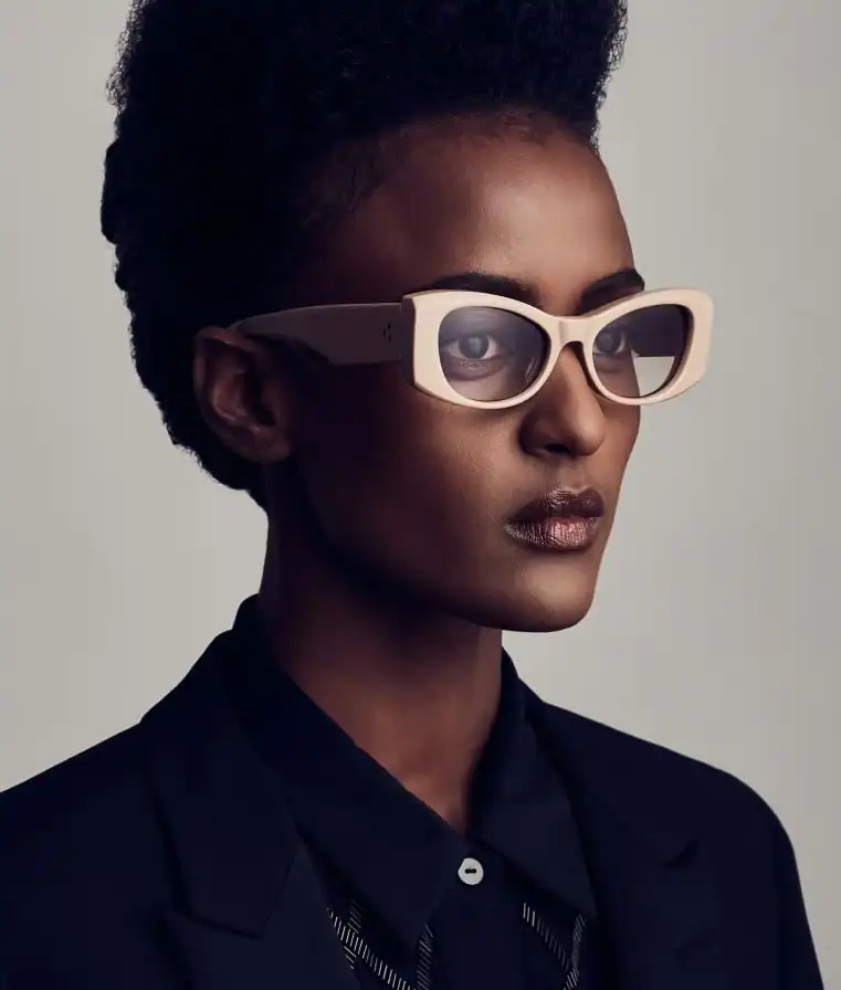 Model Harlo Porter is a modern reinterpretation of the classic shape cat-eye, where the past meets the future. Subtle bevelling above the brow line and flat, geometric temples give the frame a unique, architectural character. It is a design with a strong personality, where elegance takes on a new dimension.